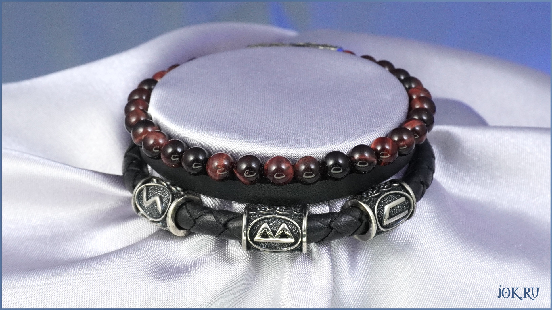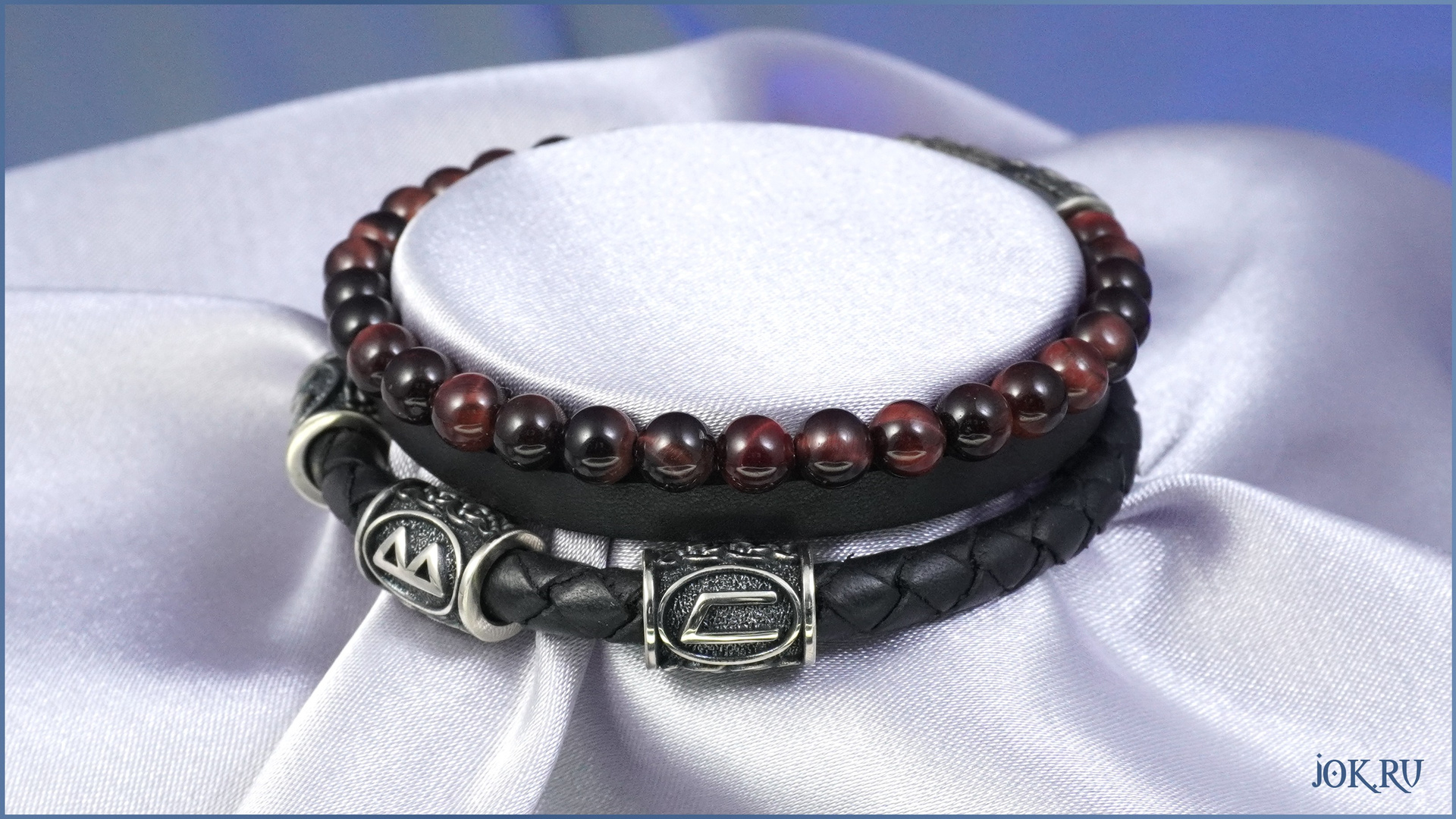 Эксклюзивный браслет из натуральной кожи с руническими шармами и бусинами из натурального камня от Мастерской Joker-studiо.