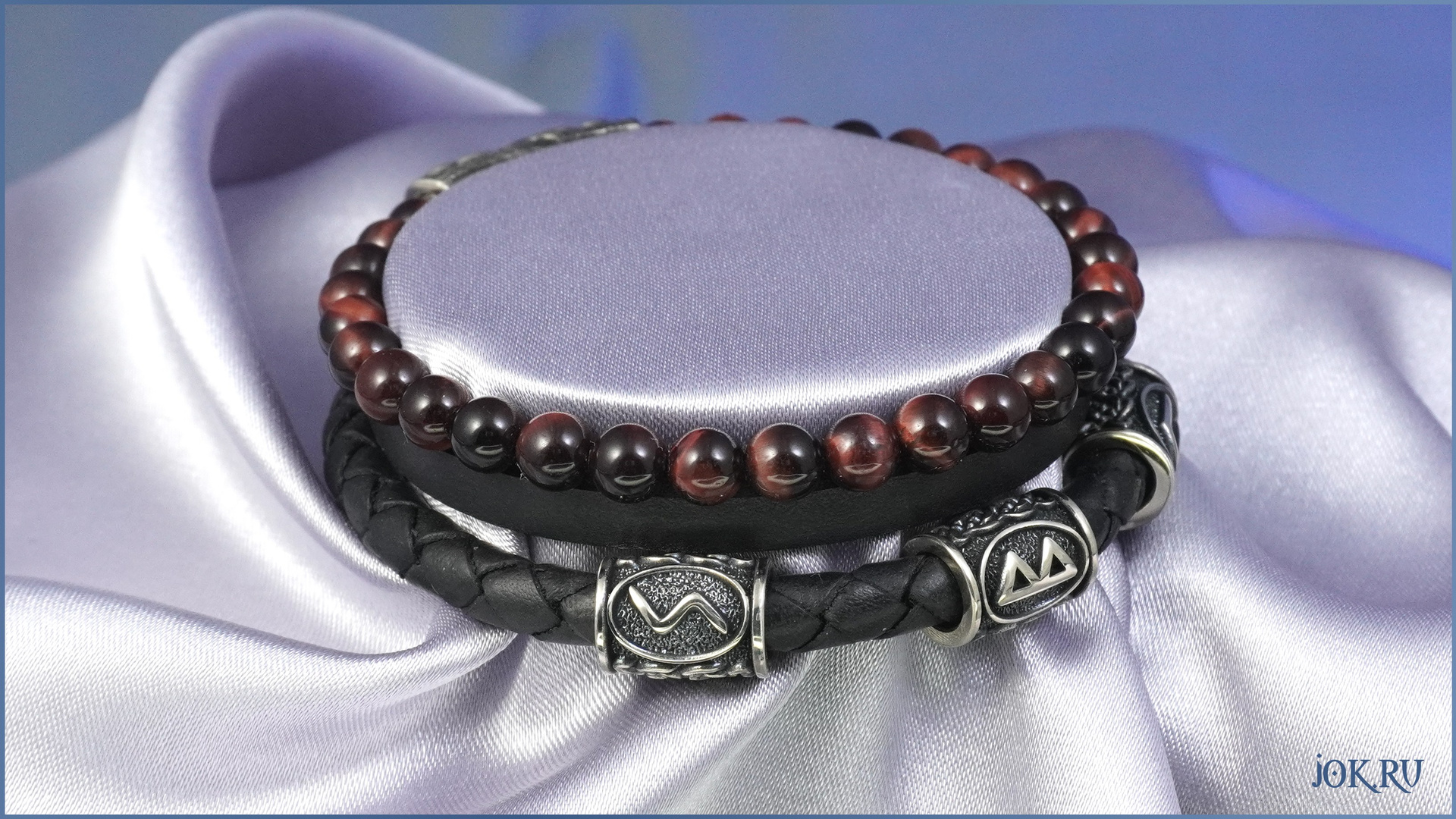 КОЖАНЫЙ БРАСЛЕТ РУЧНОЙ РАБОТЫ С РУНИЧЕСКИМИ ЮВЕЛИРНЫМИ ШАРМАМИ и БУСАМИ из НАТУРАЛЬНОГО КАМНЯ